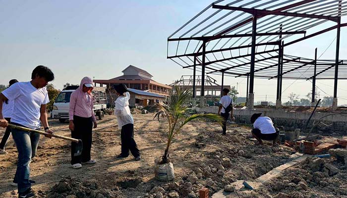 With the intention that visiting monks and donors will be protected from heat and be able to enjoy natural shade and fresh air allowing them to peacefully perform meritorious deeds within the religious compound that Mya Ayer family members actively participated in planting trees around six key areas surrounding the offering hall. These included the two main water pathways (entrance and exit), the ceremonial pavilion, the Padumma lotus pond, the flower garden, and the surrounding walkways.